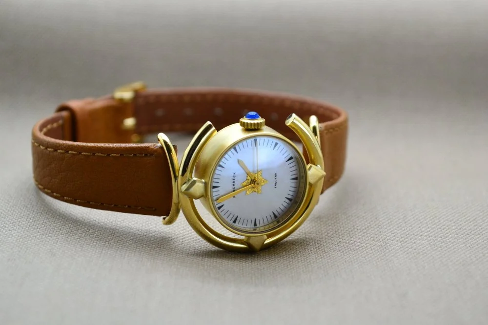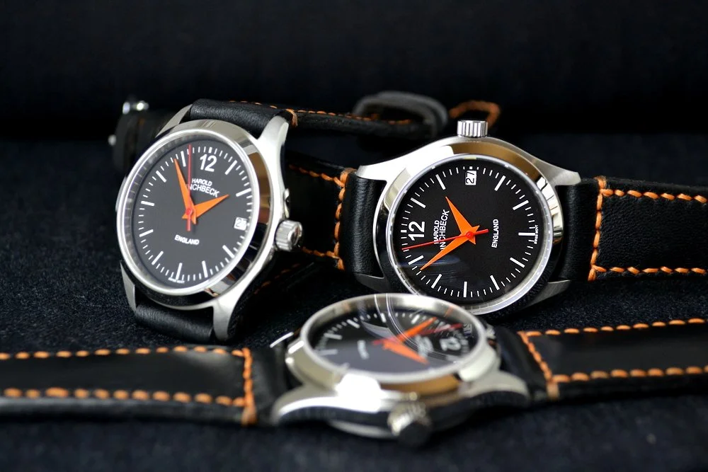 A series of beautiful watches produced for Brough Superior Motorcycles. With a gold inlaid logo on the bezel, an inlaid gold crown, a gold inner engraved ring, and a black-on-gold watch dial. A stunning series of watches!