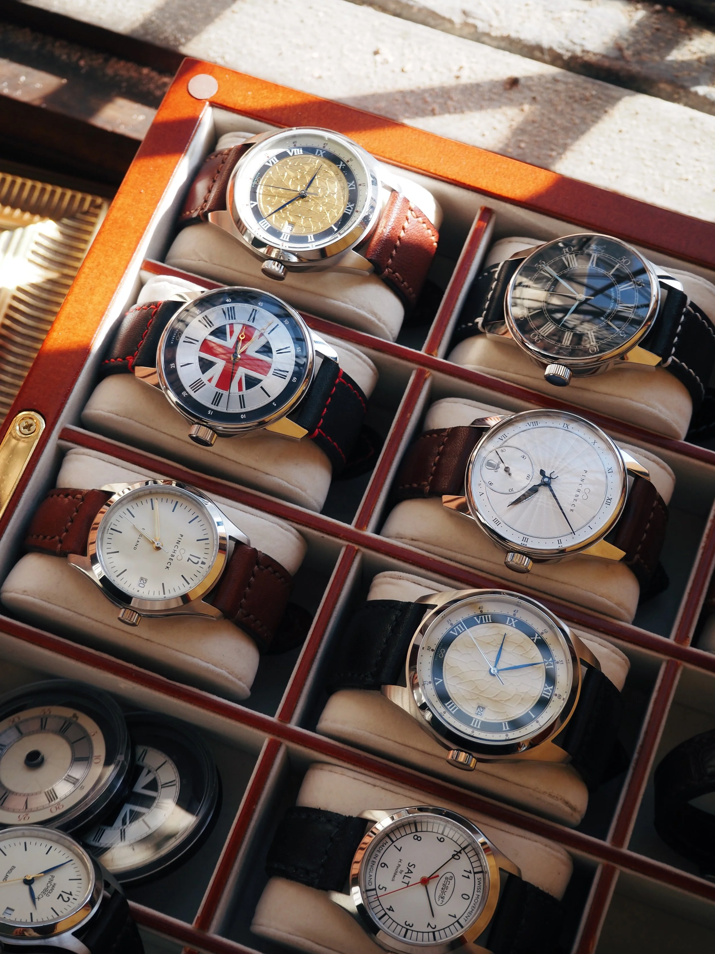 ▪ 42mm diameter men’s watch ▪ Individually hand-built in England ▪ ETA 2824-2 Swiss automatic movement ▪ Exhibition or picture caseback ▪ Tanner Bates handmade strap ▪