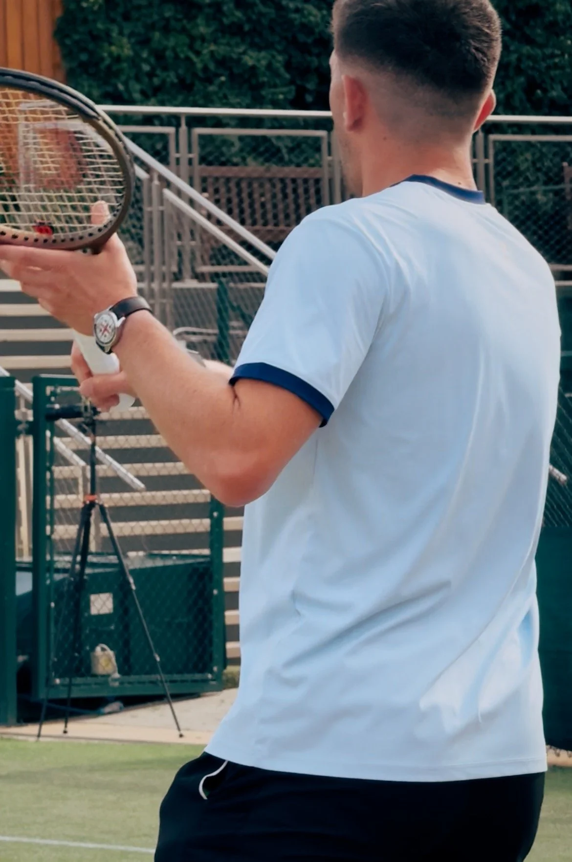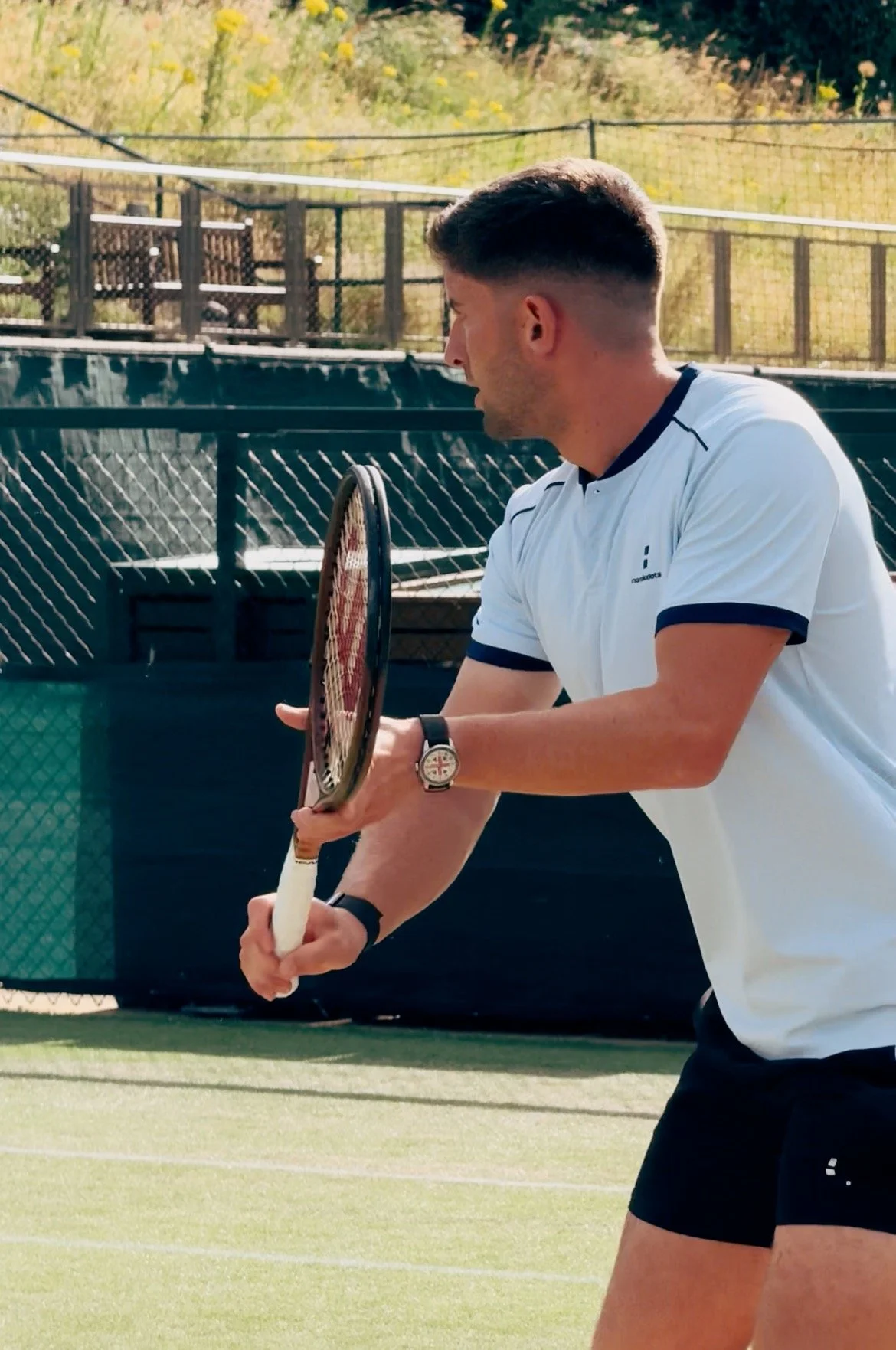Sean is no stranger to discipline, tradition, and performance — qualities that align closely with our own watchmaking values. As part of Wimbledon’s dedicated hitting team, he trains daily with some of the biggest names in the game. His choice to wear a Pinchbeck watch during such a proud professional moment speaks to the kind of quiet confidence our brand stands for.
